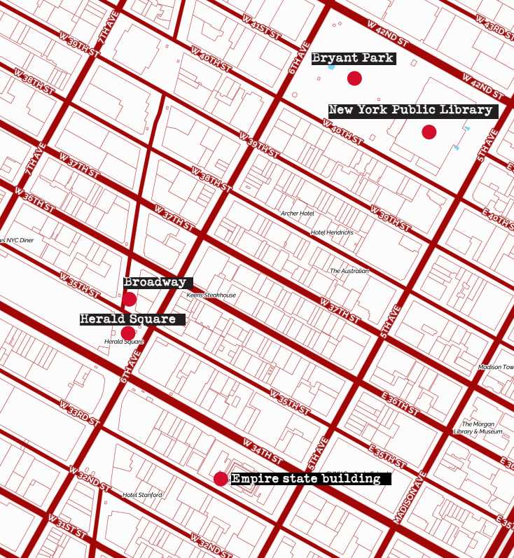 The whole walk takes place in the area around The Empire State Building.