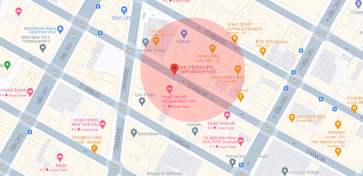 You start facing the main entrance of The Empire State Building (on the opposite street).